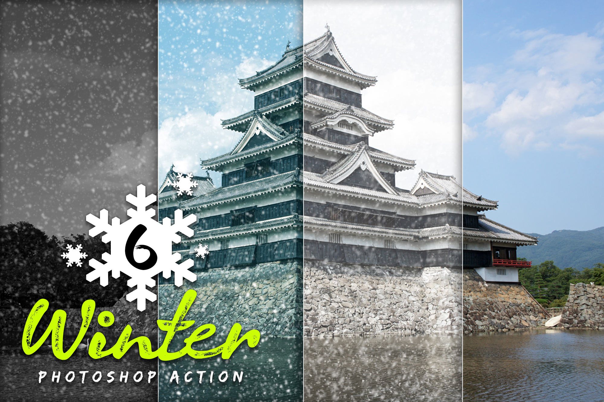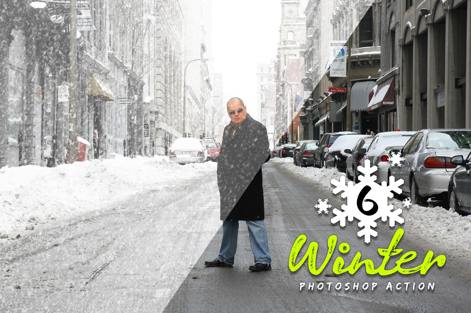 6 Winter Photoshop Action. This action transforms your photo into professional Winter. You have lots of layer control to adjust your results. the action will only work on English versions of Photoshop.