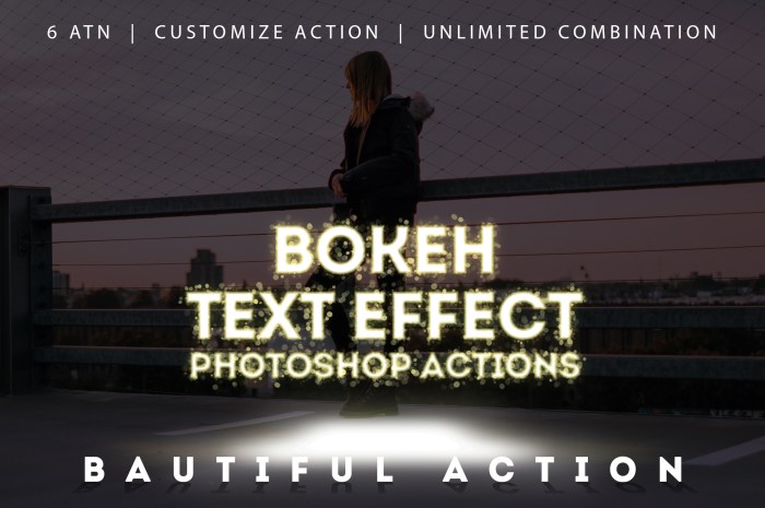 High detailed Bokeh Text Effect [Photoshop Actions]. This action transforms your Text into professional looking Bokeh sparkler. You have lots of layer control to adjust your results. The action has been tested and working on Photoshop (English version only) CS3, CS4, CS5, CS6, CC, CC 2017 the action will only work on English versions of Photoshop.
