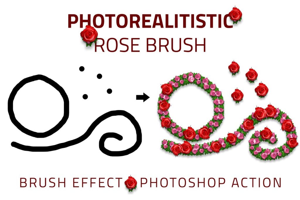 Rose Flowers Brush Effect [Photoshop Actions]. This action transforms your Text into professional looking Rose Flower. You have lots of layer control to adjust your results. The action has been tested and working on Photoshop (English version only) CS3,CS4,CS5,CS6,CC, CC 2017 the action will only work on English versions of Photoshop.